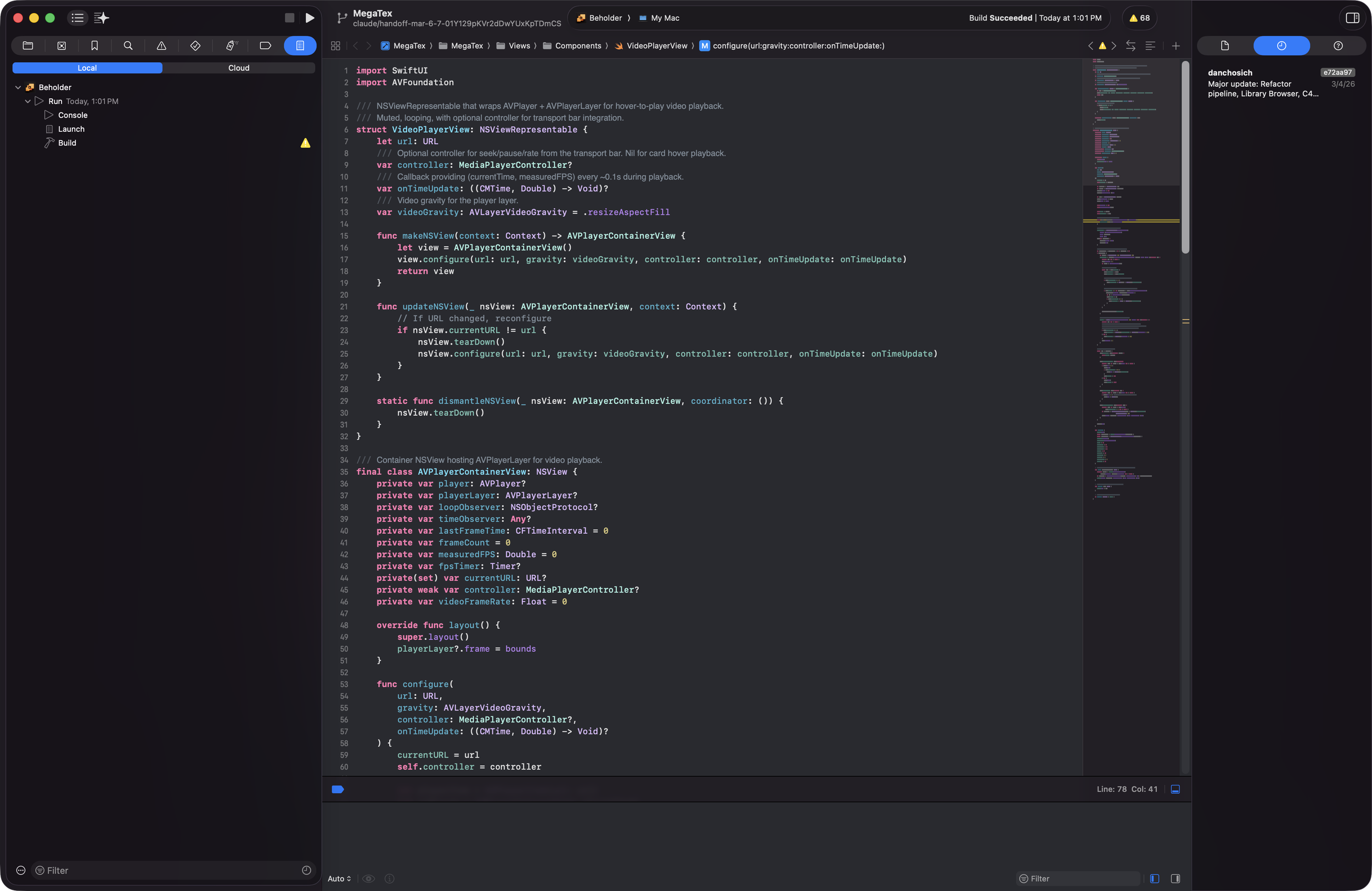Beholder is built in Swift and SwiftUI on macOS, with a Windows 11 port targeting XAML and WinUI. No web wrappers. No cross-platform frameworks pretending to be native. The Cinema 4D plugin is pure Python 3.11 running inside C4D's embedded CPython interpreter.